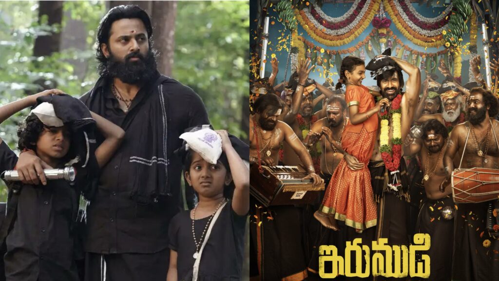 Titled powerfully Irumudi, the name carries deep spiritual significance, symbolizing a devotee’s sacred offering and surrender to Lord Ayyappa. The striking first look presents Ravi Teja in a powerful spiritual avatar- draped in traditional Ayyappa mala attire. He is seen in an ecstatic mood at a celebratory procession filled with devotees and rich cultural detailing.